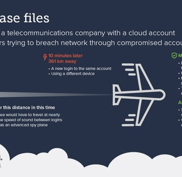 The ‘impossible travel’ scenario, covering a distance of 361 km (roughly 225 miles) at nearly twice the speed of sound between logins.